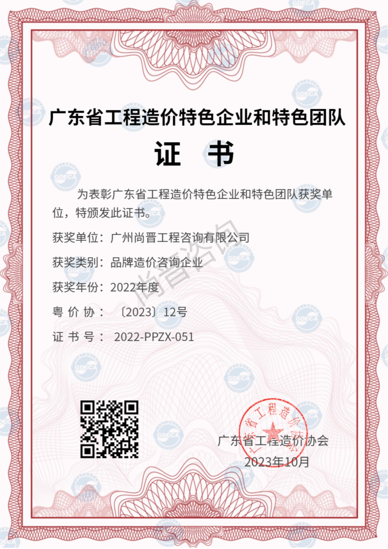 廣州尚晉工程咨詢有限公司(以下簡稱“尚晉咨詢“) 。具有建設部頒發的甲級工程造價咨詢資質、國家發展改革要頒發的工程項目管理資格證及廣東省工程建設招標代理資信A,是廣東省首批搭建大數據咨詢平臺進行全過程咨詢管控模式的公司之一,擔任廣東省工程造價協會理事單位、廣州市造價協會理事單位、廣東省建筑業協會理事單位等要職。     廣州尚晉工程...